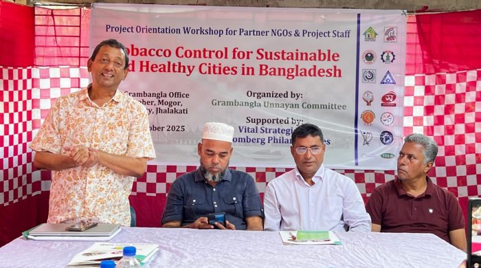রিয়াজুল ইসলাম বাচ্চু, ঝালকাঠি: বাংলাদেশে তামাক নিয়ন্ত্রণ কার্যক্রম জোরদার ও স্বাস্থ্যসম্মত নগর গঠনের লক্ষ্যে “বাংলাদেশে টেকসই ও স্বাস্থ্যসম্মত নগর গঠনে তামাক নিয়ন্ত্রণ প্রকল্প”-এর সহযোগী প্রতিষ্ঠানসমূহকে অবহিতকরণ সভা অনুষ্ঠিত হয়েছে।