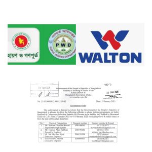 লিফট টেন্ডার কেলেঙ্কারি : গণপূর্তে ওয়ালটনের দখল, শিল্পখাতে একচেটিয়া দখল নেওয়ার সর্বশেষ চেষ্টায় ওয়ালটন এবার হাত বাড়িয়েছে লিফট সরবরাহের দিকে।