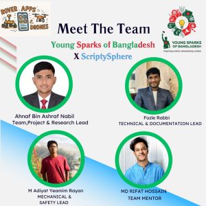 নাবিলের নেতৃত্বে টিম Young Sparks of Bangladesh XScriptySphere এইবার অংশ নিচ্ছে Environment & Sustainability Category–তে। তাদের আলোচিত উদ্ভাবন “Guardian Angel+” এবং নতুন রোবোটিক্স–সাসটেইনেবল টেকনোলজি প্রজেক্ট তাদের মূল শক্তি।