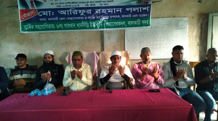 ঝালকাঠি প্রতিনিধি:ঝালকাঠিতে ধানসিঁড়ি ইউনিয়ন স্বেচ্ছাসেবক দলের উদ্যোগে বেগম খালেদা জিয়ার রোগমুক্তি কামনায় দোয়া ও মিলাদ মাহফিল অনুষ্ঠিত হয়েছে । ৬ ডিসেম্বর শনিবার বিকেলে বৈদারাপুর উচ্চ বিদ্যালয়ের হলরুমে দোয়া ও