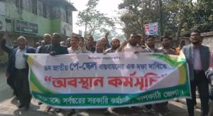 নবম পে-স্কেলের গেজেট প্রকাশের দাবিতে কেন্দ্র ঘোষিত কর্মসুচির অংশ হিসাবে ঝালকাঠি জেলার বিভিন্ন সরকারি দপ্তরের কর্মচারীরা বিক্ষোভ মিছিল, মানববন্ধন ও সমাবেশ করেছে। বৃহস্পতিবার (২৯ জানুয়ারি) সকালে জেলা প্রশাসক কার্যালয়ের সামনে থেকে একটি বিক্ষোভ মিছিল বের হয়। মিছিলটি শহরের প্রধান প্রধান সড়ক প্রদক্ষিণ শেষে প্রেসক্লাবের সামনে মানববন্ধন ও সমাবেশ অনুষ্ঠিত হয়।