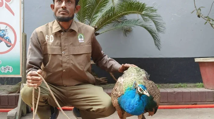 রিয়াজুল হক সাগর, রংপুর অফিস। কুড়িগ্রাম জেলার উলিপুর উপজেলায় আহত অবস্থায় একটি বিপন্ন প্রজাতির ময়ূর উদ্ধার করা হয়েছে। রোববার (১১ জানুয়ারি) সকালে ব্রহ্মপুত্র নদবেষ্টিত উপজেলার দেলদারগঞ্জ বাজার