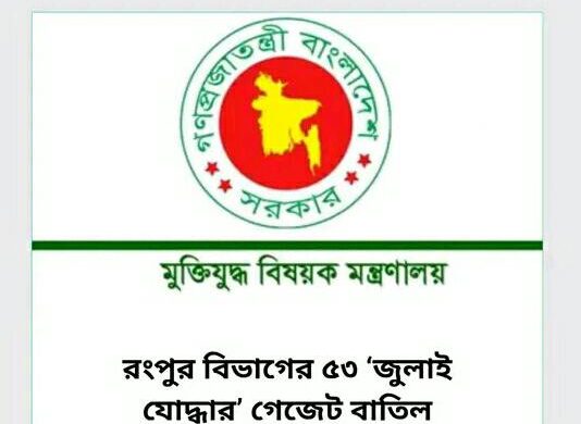 রিয়াজুল হক সাগর, রংপুর। তালিকা নিয়ে বিভিন্ন অভিযোগ ও অসঙ্গতির পরিপ্রেক্ষিতে রংপুর বিভাগের ৫৩ জন ‘জুলাই যোদ্ধার’ গেজেট বাতিল করেছে মুক্তিযুদ্ধ বিষয়ক মন্ত্রণালয়। সোমবার (১৭